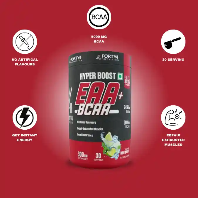 Unleash your true potential with Forty4Nutrition’s Hyper Boost BCAA+ EAA! This cutting-edge formula delivers a powerful blend of Branched-Chain Amino Acids (BCAAs) and Essential Amino Acids (EAAs) to supercharge your workouts, enhance muscle recovery, and boost endurance. Perfect for athletes and fitness enthusiasts, it supports muscle repair, reduces fatigue, and promotes lean muscle growth. Packed with superior ingredients and bursting with flavor, it’s your ultimate workout companion. Grab your Hyper Boost BCAA+ EAA now and fuel your gains with Forty4Nutrition!
